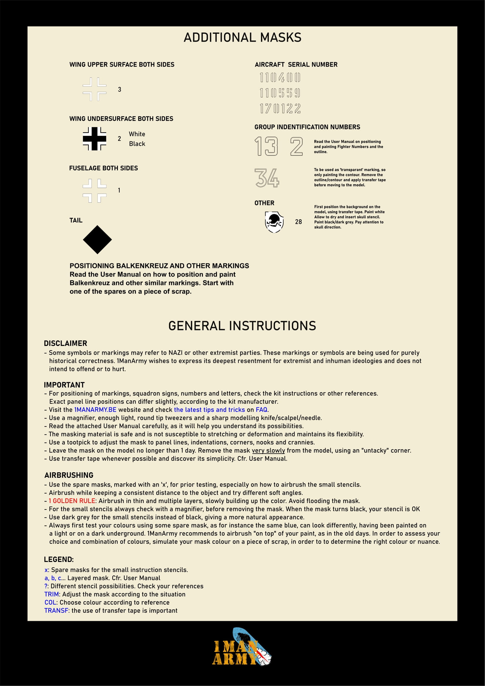 1ManArmy - 1/32 Messerschmitt Me-262A-1a high definition stencilling and national insignia paint masks for Hobby Boss