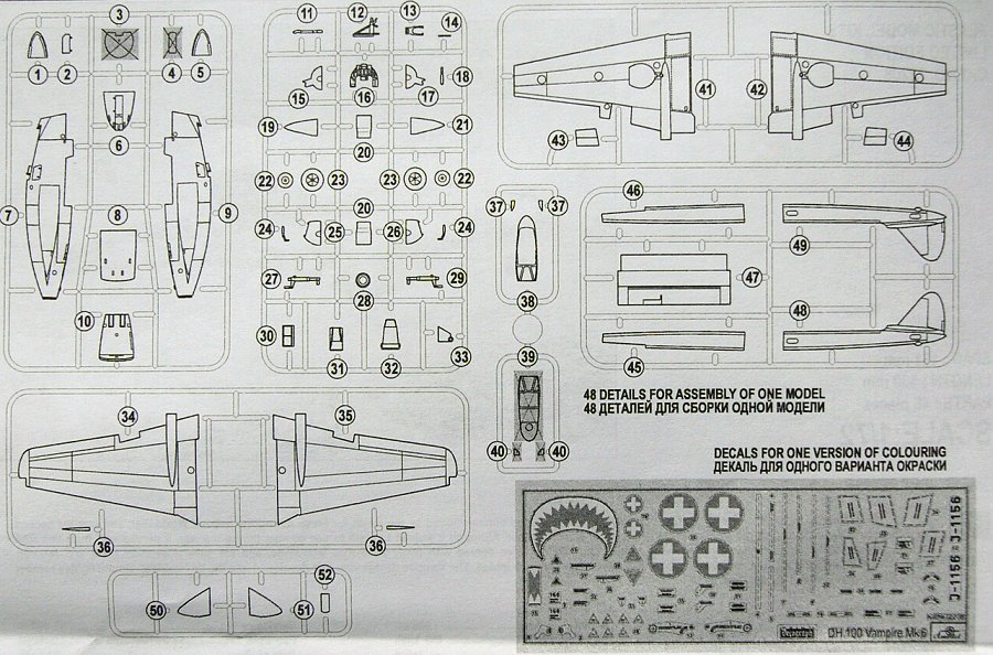 A-Model - 1/72 De Havilland DH.100 Vampire Mk.6 with pointed nose and decals for J-1156 of the Swiss Air Force .