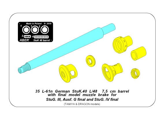 Aber - 1/35 German StuK.40 L/48 7,5 cm Barrel with final muzzle brake for Sturmgeschutz/StuG.III Ausf.G final & Sturmgeschutz/StuG.IV late(for Dragon and Tamiya kits)