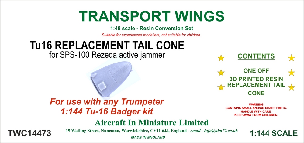 AIM - 1/144 TU-16 Replacement Tail Cone for SPS-100 Rezeda Active Jammer. (for any Trumpeter 1/144 Tu-16 Badger kits)
