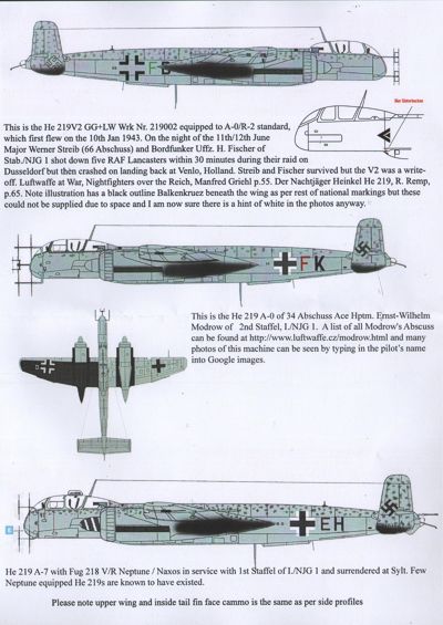 He 219A-0 G9+FK flown by Hptm. Modow. 1./NJG 1