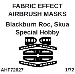 Airone Hobby - 1/72 Blackburn Skua Mk.II, Roc Mk.I (designed be used with Special Hobby kits) Fabric effect aileron and control surfaces airbrush masks These masks are made of a special adhesive vinyl foil called Oramask, which is elastic, semi-translucent and of grey-green colour. The mask can be used several times and is easy to handle before it is final pressed on to the model part surface.