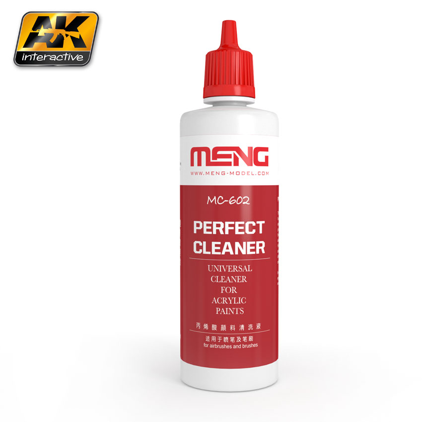 AK Interactive - Perfect cleaner 100ml. Special water based thinner designed for use with Meng acrylics. Our non-toxic, low odour thinner is also compatible for use with other brands such as Vallejo, Tamiya or Lifecolor or AK paints. Not just the typical alcohol and water based thinner. Our specially formulated product is ideal for creating the perfect paint consistency for brush and airbrush.