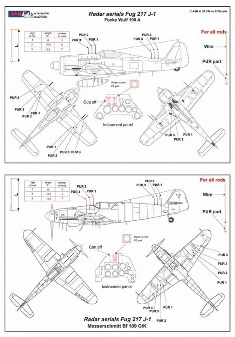 AML - 1/32 Radar Aerials FuG 217 J-1 (Fw190A, Bf 109G/K)