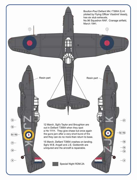 AML - 1/72 Hawker Hurricane Mk.I & Boulton-Paul Defiant Mk.I - 6 stub exhaust versions / Part I with decals for No.96 Squadron RAF, 1941. (for Airfix, Hasegawa and Revell kits)