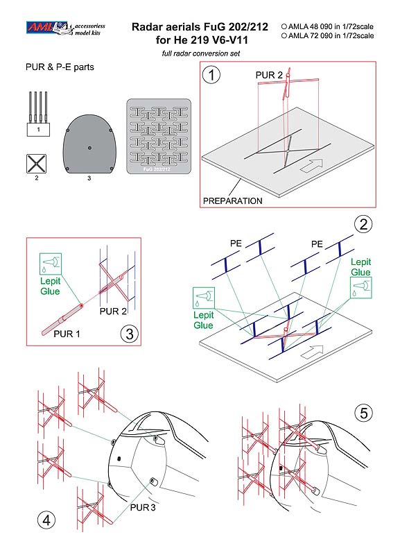 AML - 1/72 Radar aerials FuG 202/212 for Heinkel He-219 V6-V11 (for Tamiya kits)