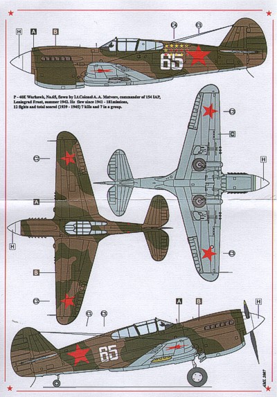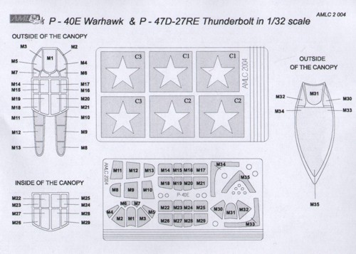 AML - 1/32 Americans in Stalin's Sky, Part IV Masks Curtiss P-40E Warhawk & Republic P-47D-27RE Thunderbolt Includes decals for 2 aircraft. National Insignia and Canopy paint masks