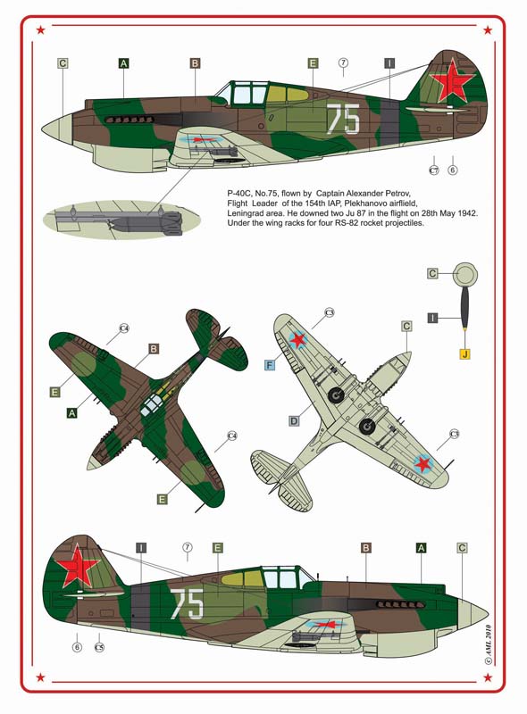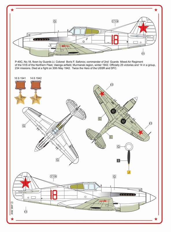 AML - 1/48 Curtiss P-40C Tomahawk Americans in Stalin's Sky, Part 2. Includes decals for 2 aircraftAMLC 8 002 include:- 1xmasks stars- 1xmask of canopy- 2x small decals (stars + numbers)