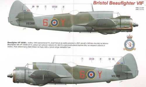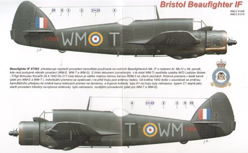 AML - 1/48 Bristol Beaufighter Mk.IF X7583 (WM-E + WM-T), with AI. Mk.IV radar, crew W/O Ladislav Bobek F/Sgt Bohuslav Kova&Part345;?k, 68Sqn. This crew were credited one Do 217 destroyed on 29.4.1942. Beaufighter Mk.VIF V8388 (6-Y), two sorties flown F/L Josef Hanush in May 1943, 600Sqn, Algeria (for Tamiya kits)