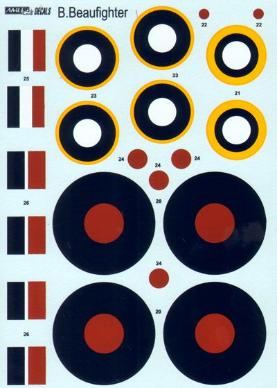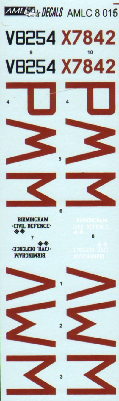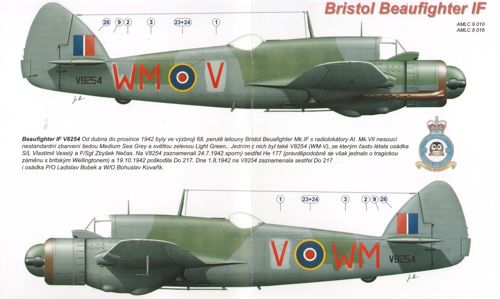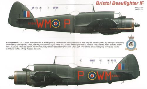 AML - 1/48 Bristol Beaufighter Mk.IF X7842 (WM-P), with AI. Mk.IV radar, crew W/O Karel Richter and F/Sgt Jaroslav Kovanda were lost on 5 September 1942. Beaufighter Mk.VIF V8254 (WM-V), crew W/O Ladislav Bobek F/Sgt Bohuslav Kova&Part345;?k, 68Sqn. This crew were credited one Do 217 destroyed on 1 August 1942 (for Tamiya kits)