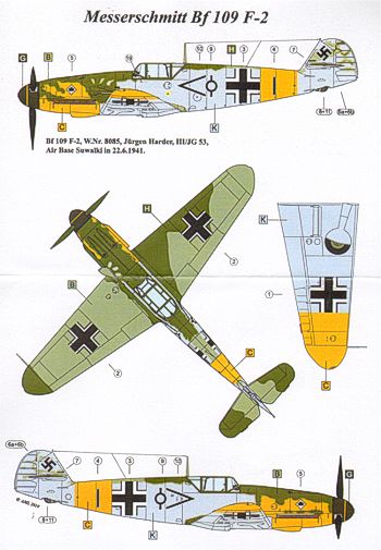 1/72 Masks for Bf 109 F-2 (incl. decals)