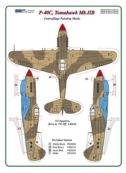 AML - 1/32 Curtiss P-40C Tomahawk Mk.IIB Camouflage painting masks of 112. Squadron RAF (for Trumpeter kits)