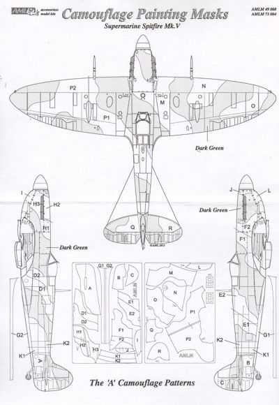 AML - 1/48 Supermarine Spitfire Mk.V 'A' scheme patterns camouflage pattern paint masks (desigend to be used with Airfix, Classic Airframe, Eduard kits, Fujimi, Hasegawa, Hobbycraft, ICM, Italeri Otaki, Special Hobby and Tamiya kits) [Mk.VB Mk.VC)