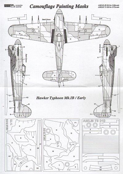 AML - 1/72 Scale Hawker Typhoon Mk.Ib / Early version Camouflage Painting Masks (for Academy, Airfix, Brengun, Czech Master Resin, Eastern Express, Frog, Hobby Boss, High Planes, Maquette, Novo, Pavla, Rpm and Aviation Usk kits)