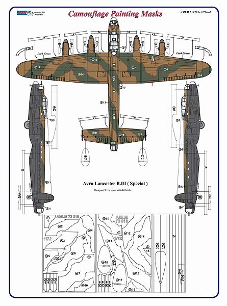 AML - 1/72 Avro Lancaster B.III (Special) camouflage pattern paint masks (designed to be used with Airfix kits)