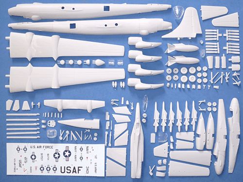 Anigrand Craftswork - 1/144 Boeing B-54A Ultrafortress. Includes Bonus kits of the Northrop YF-17 Cobra, Douglas XF6D Missileer and McDonnell Xhjd Whirlaway. Final variation of Boeing B-29A Superfortress. In 1947, after the first production of B-50A made its first flight, many problems of the old B-29 configuration were identified. The USAF decided to reconfigure all the B-50Bs and further. An early B-50A was set aside to serve as a prototype for YB-50C. The standard Pratt & Whitney R-4360 radial engines were to be replaced by the improved R-4360 Variable Discharge Turbine (VDT) radial engines. The wing span was increased by about 20 feet, which required additional outrigger landing gear to stabilize the aircraft on the ground. The fuselage length was increased by more than 10 feet to provide the increased structural strength necessary to carry the loads imposed by the new wing. The lengthened fuselage also allowed for a larger bomb load. The B-50C mockup was completed in 1948. Because it was sufficiently different from the B-50A and B, the new bomber designation B-54A was assigned. Although the project would have maximized the performance of the basic B-50 design, newer jet powered bomber already being tested and built promised much better performance than the B-54A. This resulted in the cancellation of the entire B-54 program in 1949.
