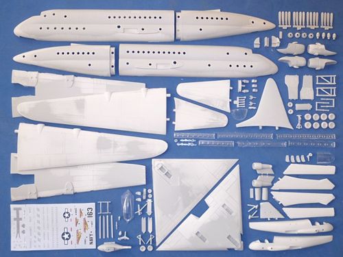Anigrand Craftswork - 1/144 Lockheed XR6V-1 / R6O-1. Includes Bonus aircraft of the McDonnell-Douglas A-12 Avenger II, Northrop-Grumman MQ-8 Fire Scout, and Boeing Diamond wing. In 1942, the U.S. Navy called for a large transport aircraft to improve upon the navy's fleet of flying boats. In the meantime, Lockheed and PanAm began a Model 189 airliner study as a greater / double-decker version of the 049 Constellation. A year later in 1943, the Navy involved the development and ordered two prototypes. It was given designation XR6O-1 Constitution. Since the XR6O-1 was a low-priority project, the first prototype was completed after the war ended in 1945. The first flight took place in late 1946. It was found to be significantly underpowered. In 1949, the second R6O was commissioned into service at the logistics support squadron VR-44. Soon joined by the first R6O, the two R6Os reassigned to VR-5 for personnel and material transport, and were redesignated R6V-1. The R6V-1 had operational difficulties which prevented it from meeting its original design objectives. The four Pratt & Whitney R-4360s did not offer the power needed by such a large aircraft. With a total of 3,760 flight hours between the two aircraft, in 1953 the R6V Constitutions were retired and placed in storage at Naf Lichtfield Park, Arizona.