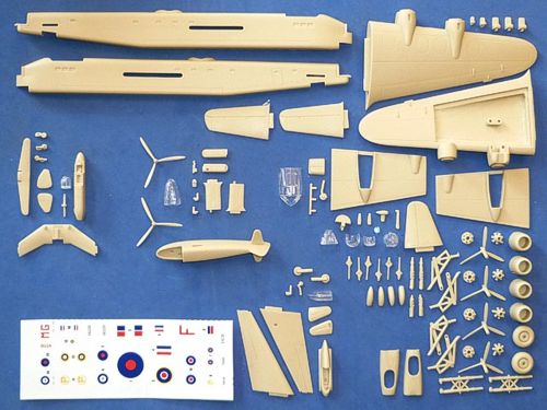 Anigrand Craftswork - 1/144 Short Stirling Mk.I British first 4-engined heavy bomber in WWII. Includes bonus kits of the GAL.56-03 / Miles M.35 Libellula / Baynes Heliplane. In 1936, when the British Air Ministry issued Specification B.12/36 which called for a conventional design which could operate from existing airfields but have a range of not less than 3,000 miles and carry a bomb load in excess of 8,000 lbs. In all 19 aircraft manufacturers were advised of the Specification and of five tendered designs. Both Short and Supermarine were asked to produce two prototypes each of their designs but by chance the offer from Short was the only one to reach production. The first Stirling prototype made its first flight in 1939 and was badly damaged on landing failure. It had to be written off with the delay in test flying whilst modifications were made. The first production aircraft had left the factory but even this had an engine failure on take-off. Production had continued at the height of Battle of Britain. By the end of 1941 some 190 Strilings had been built and delivered. In late-1942, the Raf started using the larger 4000-lbs bombs. The Striling became less useful. When the Handley-Page Halifax and Avro Lancaster became available from 1943, the Stirling was decided to withdraw to second tasks.
