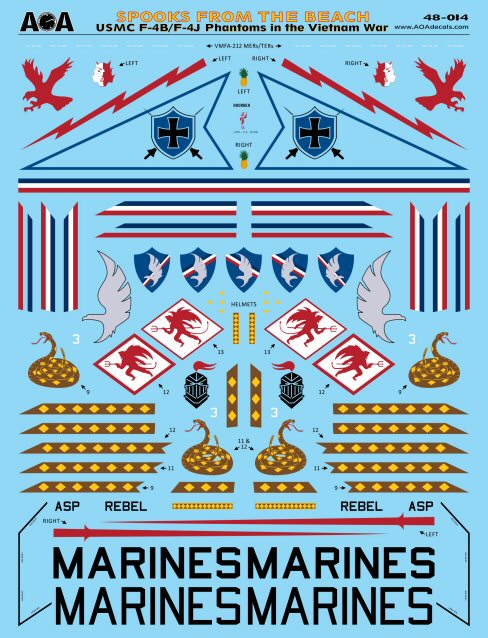 This extensive 1/48 sheet covers six Marine fighter attack squadrons operating the F-4B and F-4J Phantom in the Vietnam War (with some additional coverage when stationed in Japan and HawaII).