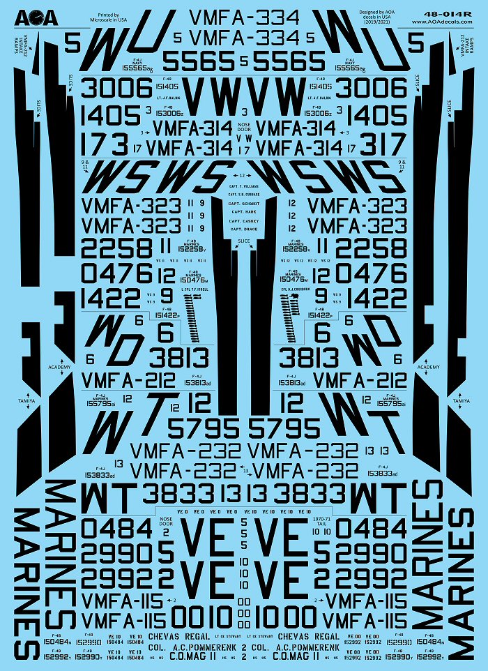 This extensive 1/48 sheet covers six Marine fighter attack squadrons operating the F-4B and F-4J Phantom in the Vietnam War (with some additional coverage when stationed in Japan and HawaII).