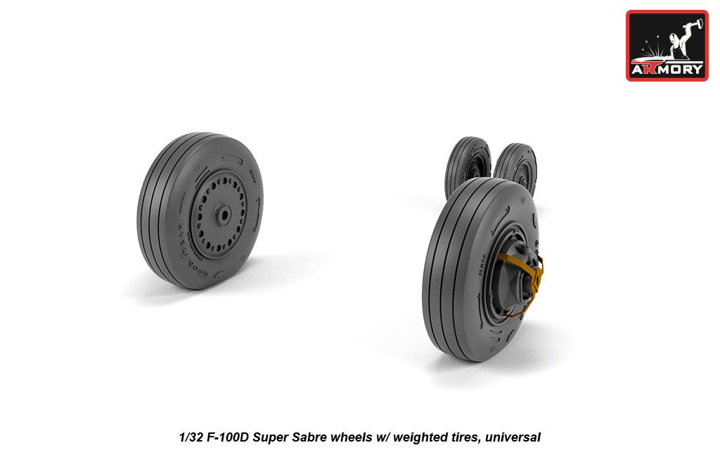 Armory - 1/32 North-American F-100D Super Sabre wheels with weighted tires (for Trumpeter kits)