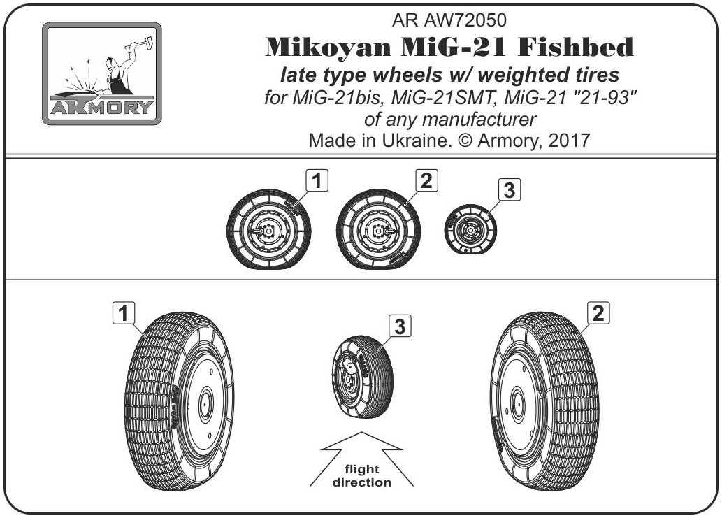 Armory - 1/72 Mikoyan MiG-21 Fishbed wheels w/ weighted tires, late for MiG-21bis, MiG-21SMT, MiG-21 21-93