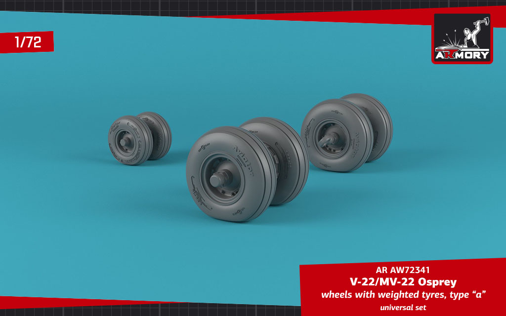 Armory - 1/72 Bell-Boeing OV-22 Osprey wheels with weighted tires type A (for ESCI, Hasegawa, Italeri, Revell, and Testors kits)