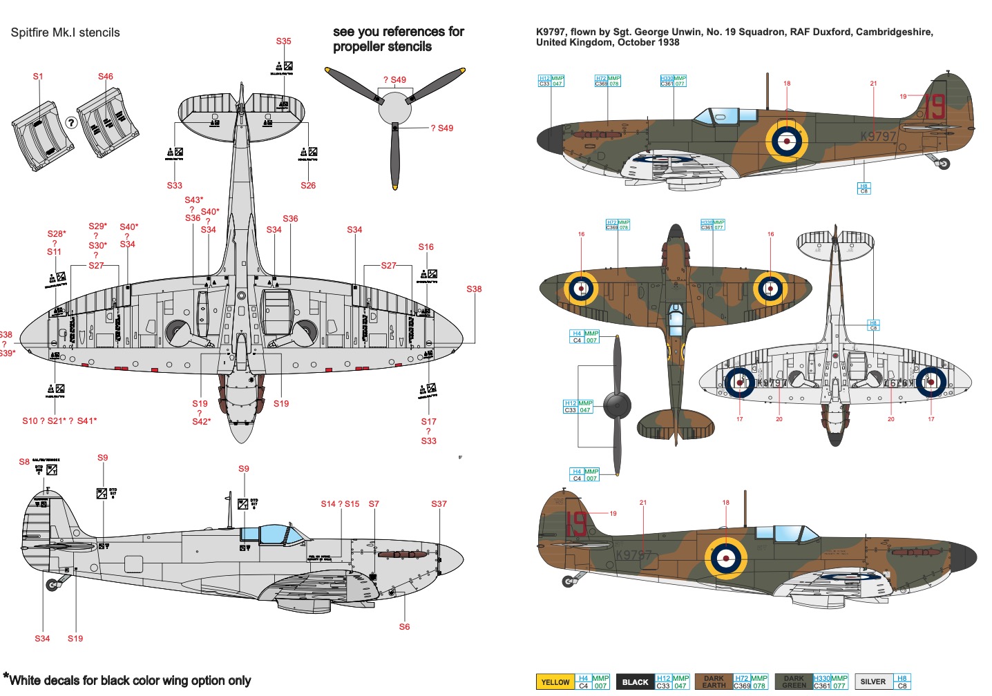 Art Scale - 1/32 Supermarine Spitfire Mk.I early part 2 1939 Raf Aces, double sheet in format A5 size,