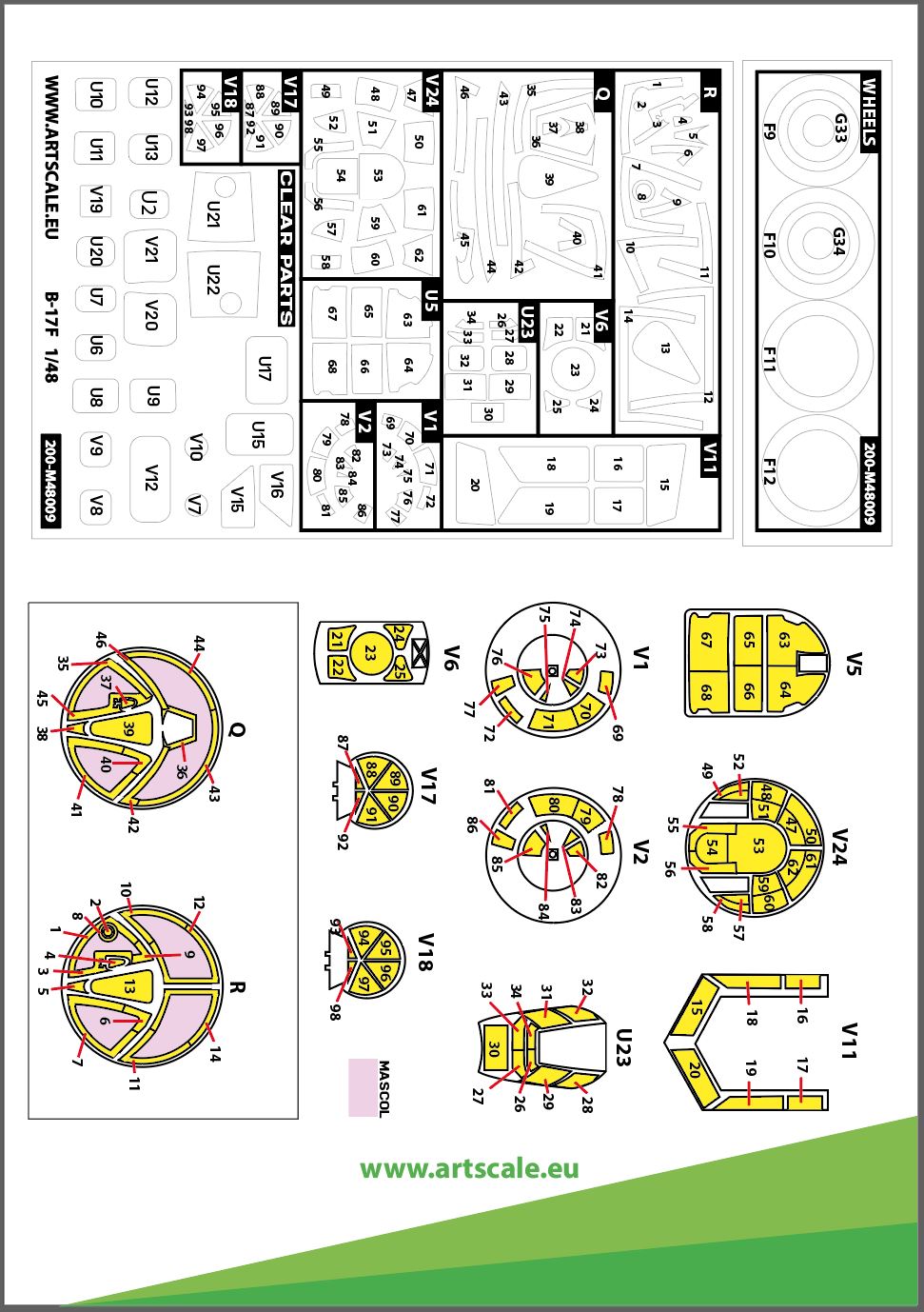 Art Scale - 1/48 Boeing B-17F Flying Fortress wheels and canopy masks ((outside only) (for Hong Kong)