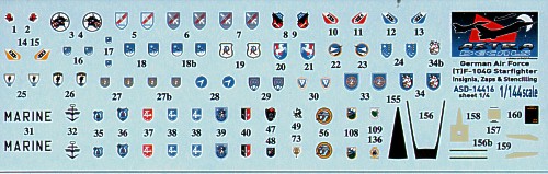 Set de décalcomanies Astra Decals pour Lockheed F-104G Starfighter allemand à l'échelle 1/144.