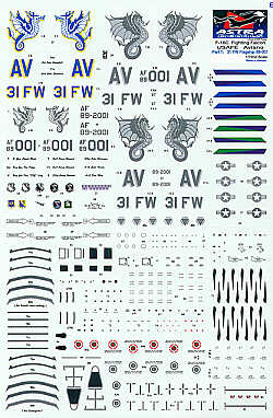 Astra Decals - 1/48 Lockheed-Martin F-16C Aviano. 89-001 31FW Flagship. Includes four versions from 1994 to 1998 with blue and low vis Sea Horse on fin