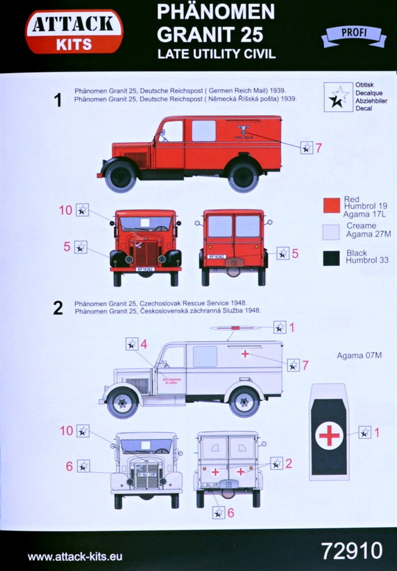 Attack Kits - 1/72 Phanomen Granit 25H Late Utility Civil, Reichpost, Cz. Ambulance (new parts, p/e)