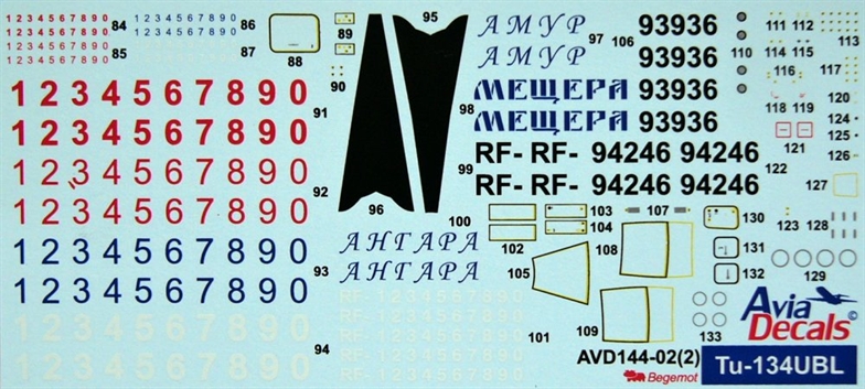 AVIA DECALS - 1/144 Decals Tu-134 UBL & paint mask (ZVE)