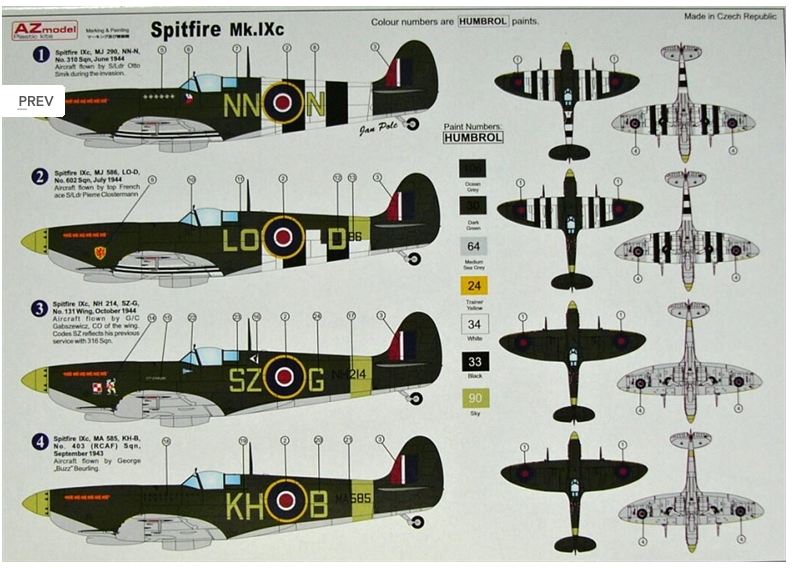 AZ Model - 1/72 Supermarine Spitfire Mk.IXc 'ACES' (4x RAF)