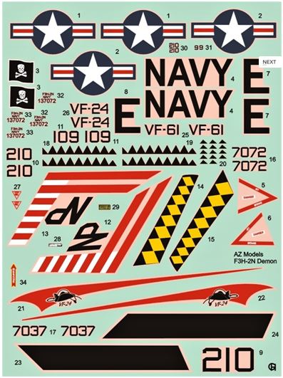 AZ Model - 1/48 McDonnel Douglas F3H-2N Decal set - Part 1
