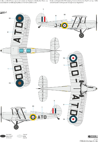 The Stampe S.V.4b 'b' for bis or second version prototype was registered as OO-ATC. It won competitions held by the Belgian Aeronautique Militaire and the French Armee de l'Air, which were both held in the summer of 1939. The Belgians ordered thirty planes for their air force, delivered between December 1939 and May 1940. Michel Donnet and Leon Divoy later 'liberated' the prototype backup, registered as OO-ATD, on July 4th 1941, and used it to escape from occupied Belgium to England where it was camouflaged with a Raf pattern. This plane was fitted with a modified exhaust for a special duty mission, although this was later cancelled.