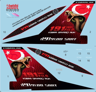 Babibi Models - 1/72 Lockheed-Martin F-16D Fighting Falcon Kobra sq Special Tail Decal Set