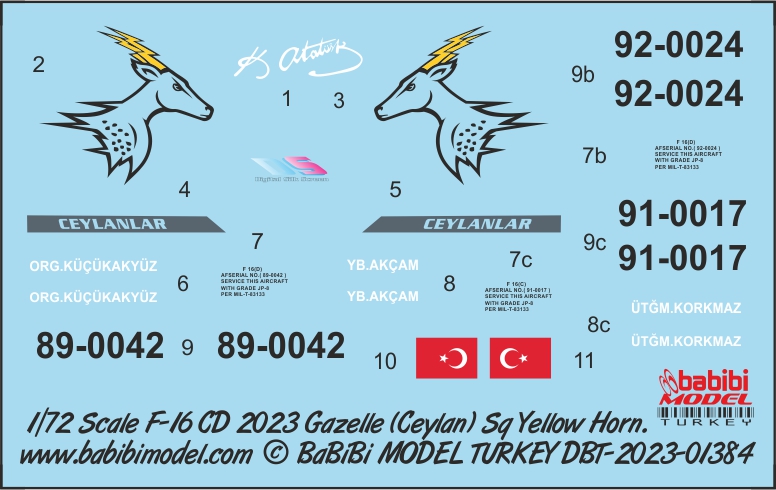Babibi Models - 1/72 Lockheed-Martin F-16C/Lockheed-Martin F-16D Fighting Falcon 142 sq 2023 New Tail Yellow Horn Decal Set