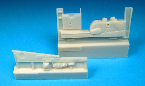 This set consists of new super detailed, accurate resin sidewalls, which replace the Tamiya kit parts. Many handles and levers have been molded separately to ease painting and improve accuracy. A fret of photoetched parts rounds out this set, and it includes a number of cockpit details such as canopy rails, rudder pedal inserts, bomb salvo handles and new breather plates. These sidewalls may be adapted to fit other 1/32 Mustang kits such as the old Hasegawa kit and the newer Dragon kits, and will be a noticeable improvement over the kit parts.