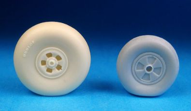 Barracuda Studios - 1/48 Bristol Blenheim Mk.I-Mk.V main wheels. Accurate, detailed resin mainwheels replace undersized kit parts for the 1/48th scale Classic Airframes, Jaguar and vacform Blenheim kits of all marks. These wheels were designed from photos and dimensions taken off surviving mainwheels and include raised logos on both sides. Classic Airframes later included correct diameter resin wheels, but they are still inaccurate. (designed to be used with Classic Airframe kits)