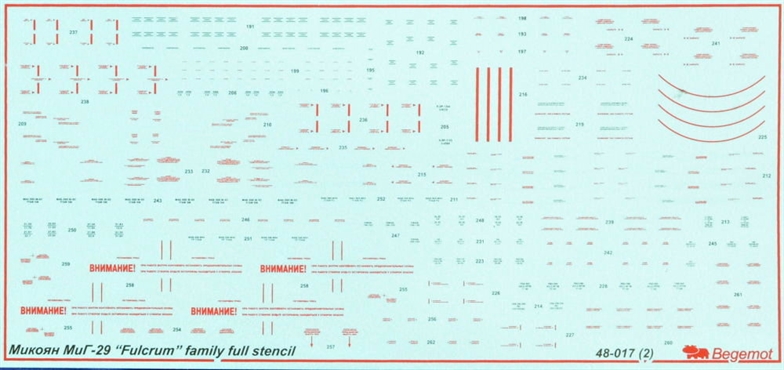 Begemot - 1/48 Mikoyan MiG-29 family full stencil data.