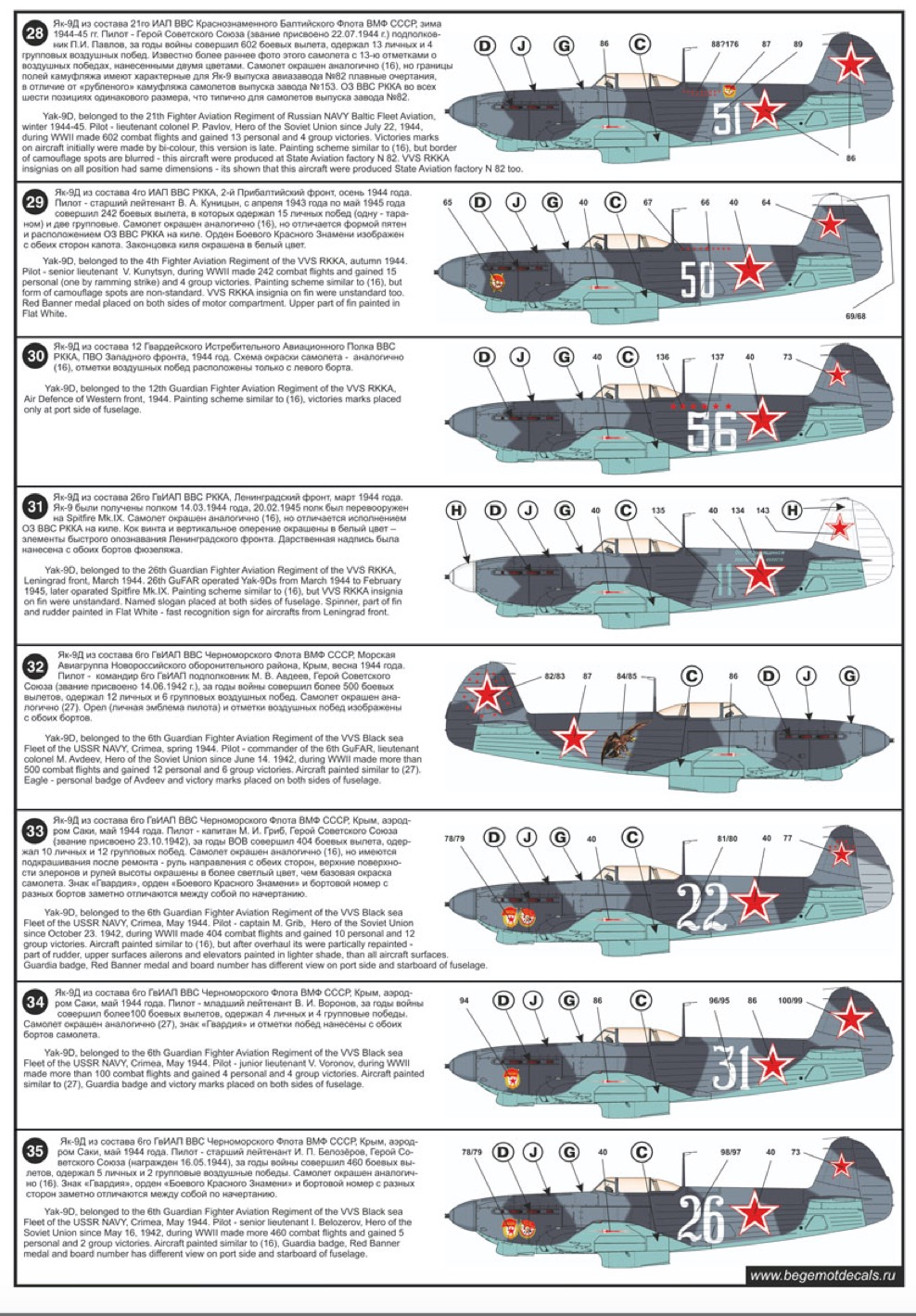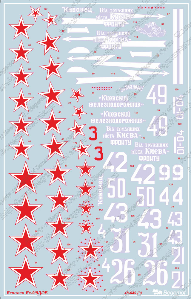 Begemot - 1/48 Yakovlev Yak-9 Decal with opportunity make 67 marking variations of Yak-9 family aircraft's all types, from next AF's: USSR.