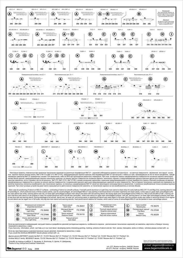 Begemot - 1/72 Mikoyan MiG-21 Fishbed complete stencil data for one aircraft