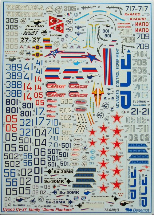 Begemot - 1/72 Sukhoi Su-27 Family 'Demo-Flankers'. Includes 1 big decal sheet and 1 small decal sheet for 45 aircraft and 20 page A4 instruction booklet