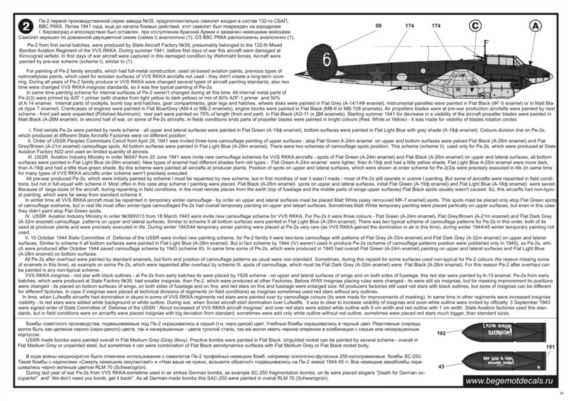 Begemot - 1/72 Petlyakov Pe-2 with opportunity make 108 marking variations of Pe-2 family aircraft's all types, from next AF's: Vvs RKKA, Finland, Poland, Yugoslavia, Czechoslovakia, Bulgaria and Hungary.