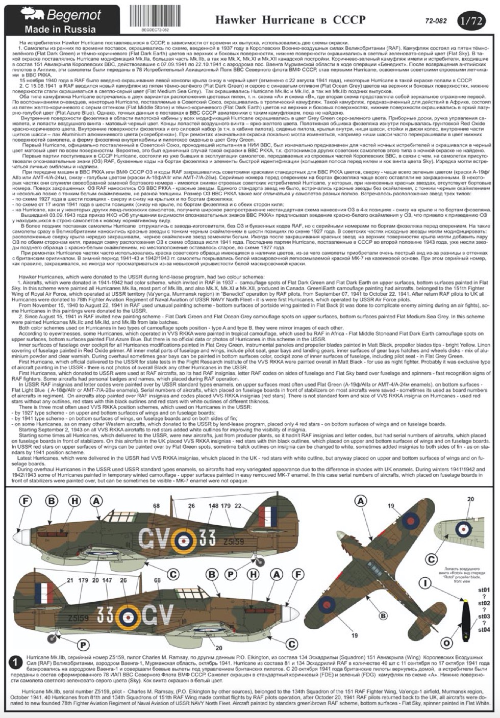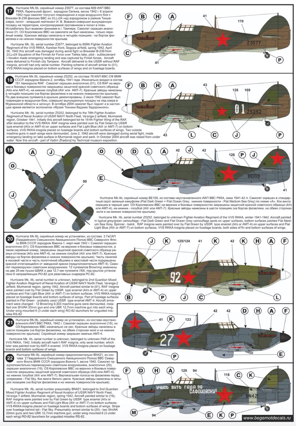 Begemot - 1/72 Hawker Hurricane in the Ussr Decal with opportunity make 71 marking variations of Hawker Hurricane aircraft of all modication from Vvs RKKA.