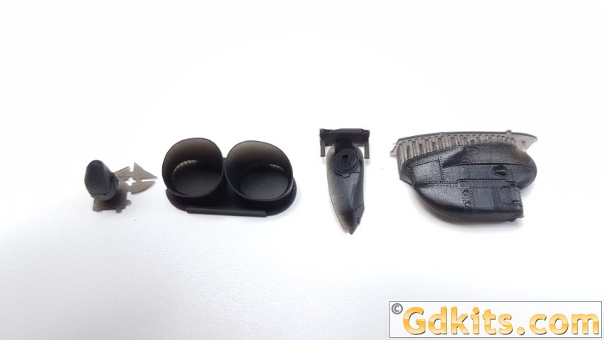 En plus des pièces résine, Eduard propose des pièces directement imprimées en 3D. La technique permet de réaliser des petites séries sans investir du temps dans la réalisation de copies en résine. Même si les détails sont élevés, les strates d'impression sont toujours visibles et ça demandera un petit travail de préparation avant de pouvoir les coller à la maquette mais rien de trop difficile.