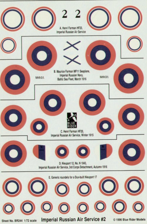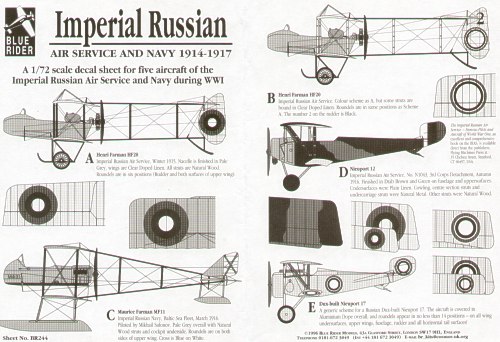 Blue Rider - 1/72 Imperial Soviet Air Service and Navy 1914-17 5 Henri Farman HF.20 x 2, Maurice Farman MF.11, Nieuport N.12, Nieuport N.17