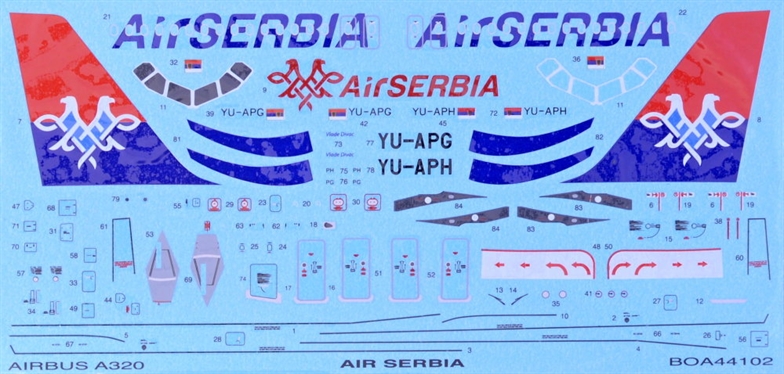 BOA DECALS - 1/144 Decals Airbus A320 Air Serbia (REV/ZVE)