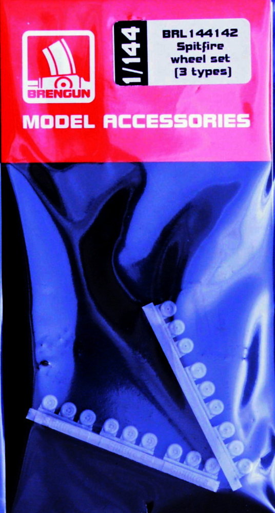 Brengun - 1/144 Supermarine Spitfire wheels set (3 types of tyres and spokes)resin set of wheels (three types)